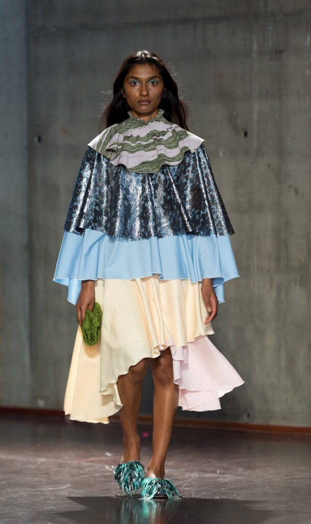I prosjektet har hun foretatt en reise til Sáivu, et mytologisk sted, der hun har lekt og utfoldet seg, uten grenser og forventninger til hvordan samisk design skal se ut. Resultatet har blitt en personlig fortelling, der hennes sjøsamiske bakgrunn møter verden på en helt ny måte.