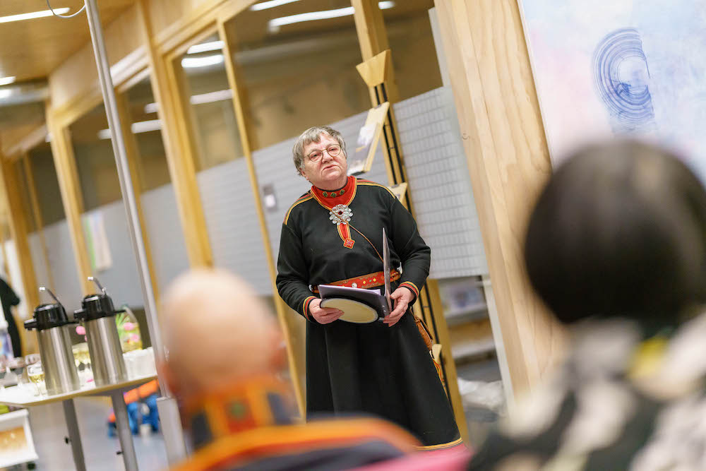 På utstillingsåpningen Gođđin: hearvás árbi/ Veving: fargerik og mangfoldig kulturarv, 04.02.2022, holdt Ruth Larsen et foredrag om sjøsamekvinnens duodji år. I fortellingen tok Ruth utgangspunkt i sin áhkku, bestemors, Ellen Katrine Birgitte Henriksen, sitt duodji år, i Skardalen. Kvinnene visste nøyaktig når ting skulle gjøres. De brukte almanakken og merkedagene var viktige. Når Mikkelsmesse kom skulle det og det være gjort. Det samme med f. Eks. Márjjabeaivvi, da skulle ting skulle være ferdig eller starte opp. Duodjiåret begynte i september og ble fulgt nøyaktig år etter år, forskjellig arbeid startet på samme dag og skulle vare til samme tidspunkt. Alle årstider hadde sine spesifikke gjøremål, der den ferdige duodjien var helt nødvendig for hele familien. Foredraget ga oss et viktig innblikk i sjøsamekvinners liv og virke. Mye av den tradisjonelle kunnskapen kvinnene innehadde er i dag borte. Innblikket i både den materielle og den immaterielle kulturarven vi fikk av Ruth Larsen er av stor verdi for oss i dag, og bidrar til at vi verdsetter viktigheten av vår egen kultur.